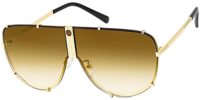 Frames are all shiny gold with black tips and painted hexagon shaped parts on top middle of frames in black, brown, and grey colors.
