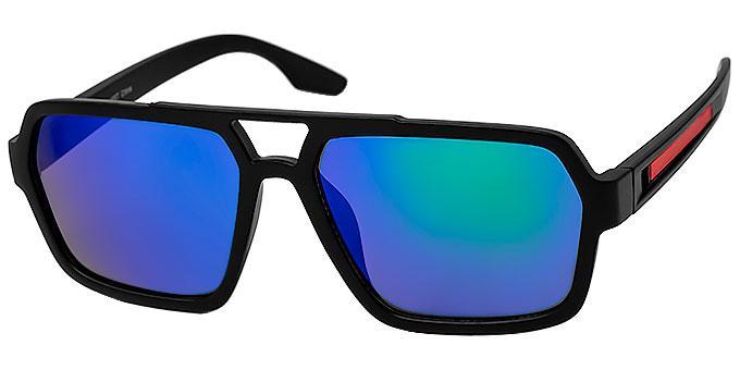 Frames are all matte black with colored rubber parts on temples in red, grey, and blue colors mixed.