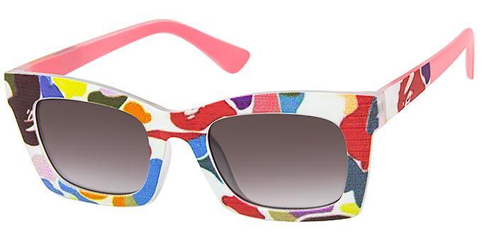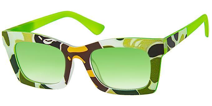Frames are all matte with assorted graphic prints with frosted arms in ivory, green, pink, and brown colors mixed.