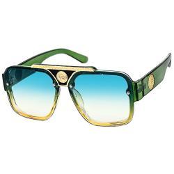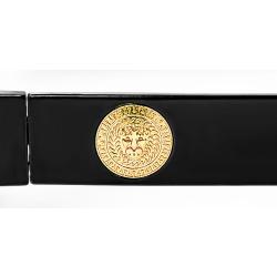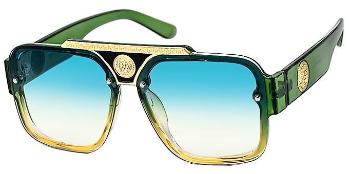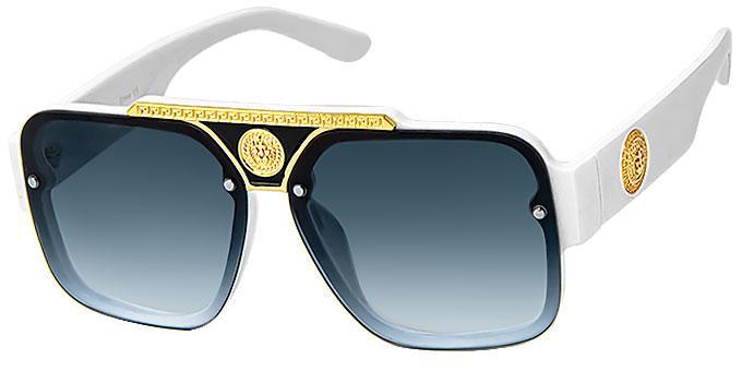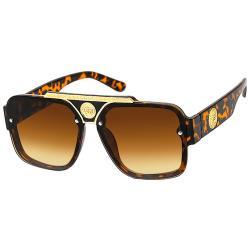 Shiny gold parts and lion head medallion decor on nose bridge and temples.