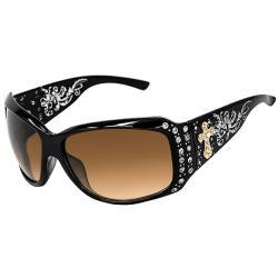 Frames are all crystal colored frames with color fronts in black and brown colors and laser engraved patterns on arms.