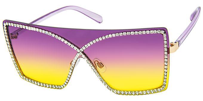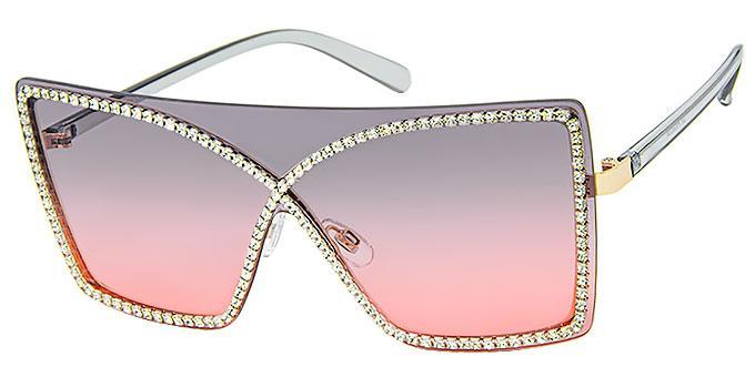 Frames are shiny gold with crystal colored arms in pink, grey, purple, and blue colors.