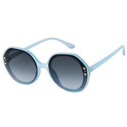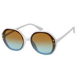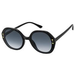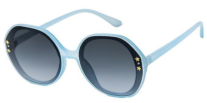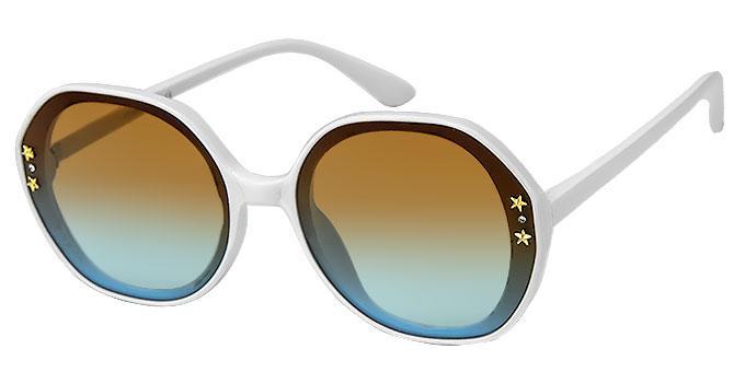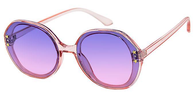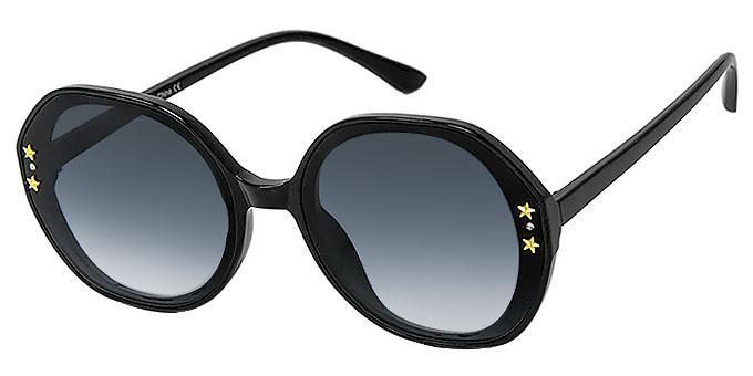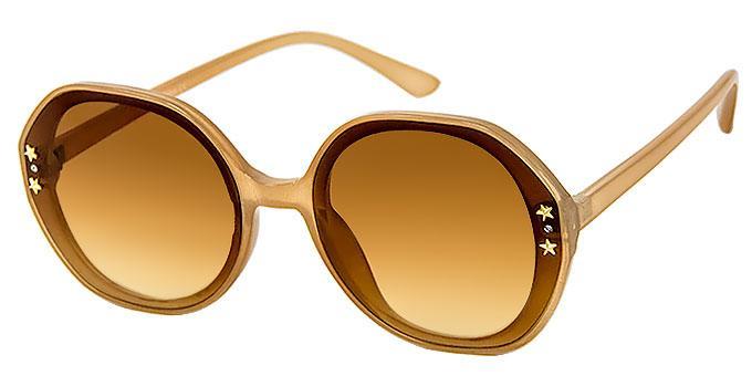 2 small shiny gold star studs and clear rhinestones on each side of lens.