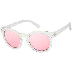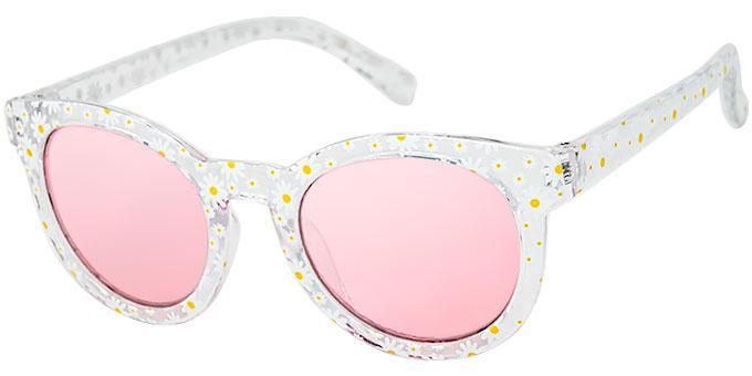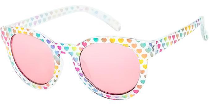 Frames are all crystal clear with a variety of printed patterns including mutli-colored flowers, daisies, multi-colored hearts, and iridescent hearts.