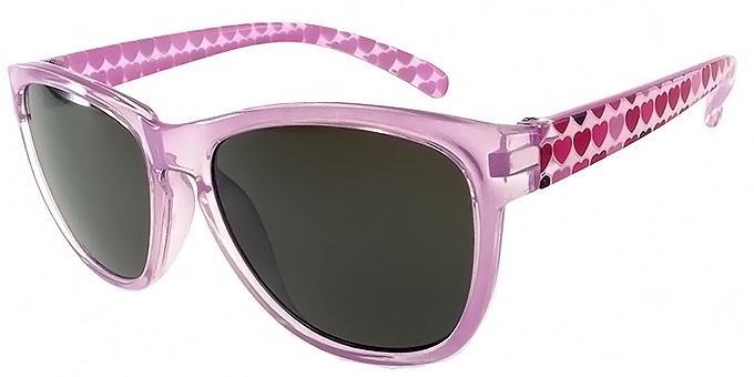 Frames comes in shiny jelly colors in orange, green, purple, and pink colors with assorted colored heart patterns on arms mixed in a dozen.