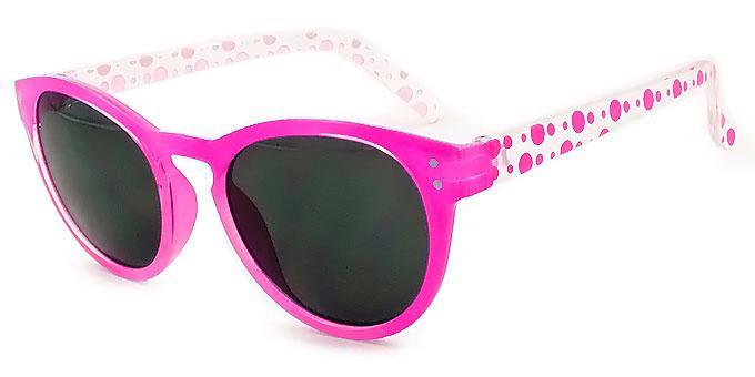 Frames comes in shiny jelly colored frames with multi-colored stripes or polka dot patterns on arms and silver painted studs on each side of frames mixed in a dozen.