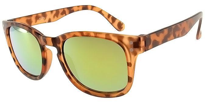 Frames comes in matte black, tortoise, yellow tortoise, and shiny crystal smoke with silver painted studs on each side of frames.