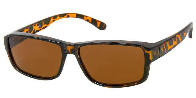 Put-Over Polarized SunglassesSlim looking sunglasses that can wear over your prescription glasses. Frame colors in black and demi in shiny and matte finishes. All comes with polarized lens in fully tinted smoke and brown colors mixed in a dozen.