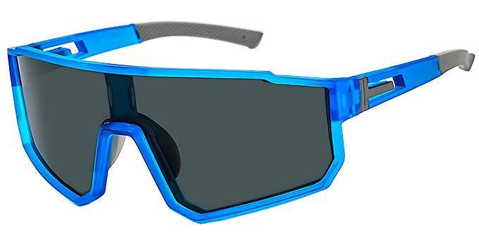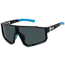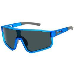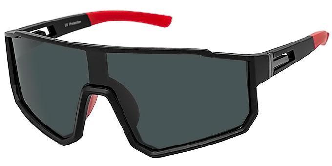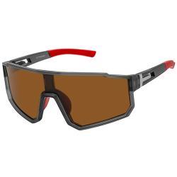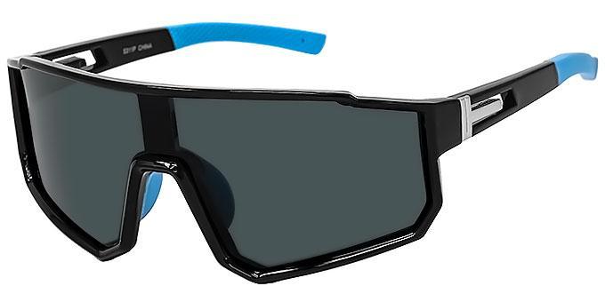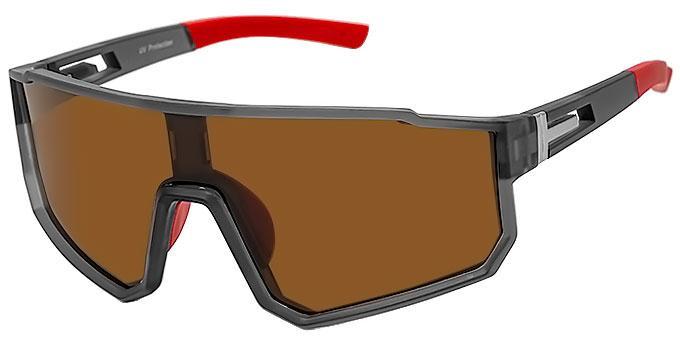 Sports wrap with polarized one-pieced lens and shiny silver and gunmetal parts on temples
