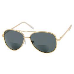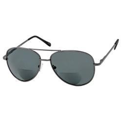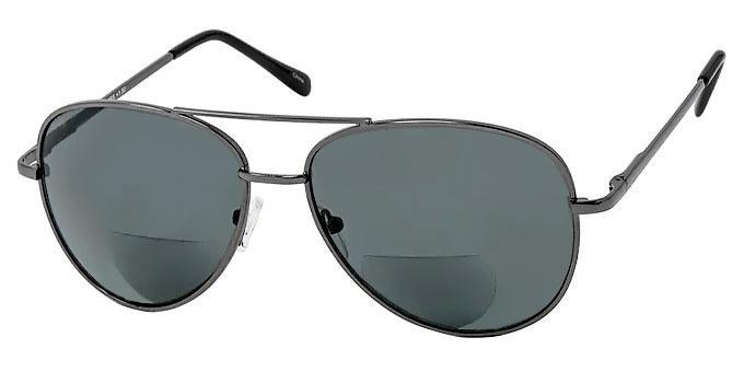 Bifocal sunglasses with aviator style frames.