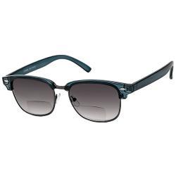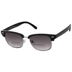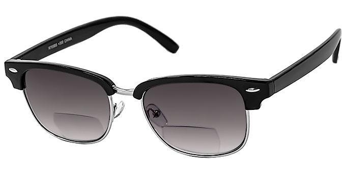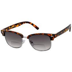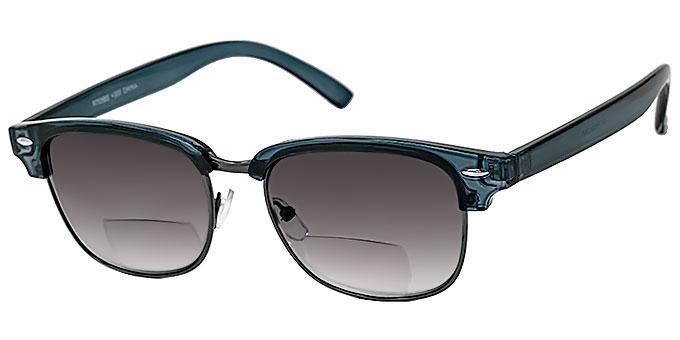 Soho style frames in shiny black, tortoise, and crystal bluish grey colors with shiny silver and gunmetal rims.