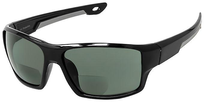 Sports wrap style frames with polarized bifocal lens.