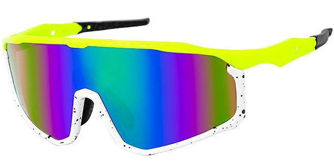 Top half of frames comes in shiny black, neon yellow, white, and teal.