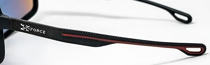Shiny silver [X-FORCE] emblems on temples.